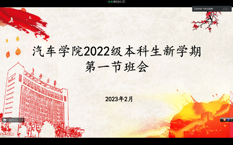 新学期,新征程。为切实做好本学期相关学生工作,保障学生在学期初能进一步明确目标,调整心态,逐梦扬帆再起航。2月16日下午,我院2022级通过线上组织开展新学期第一节班会,2022级辅导员王凯尧、王文杰及全体2022级学生一同参会。