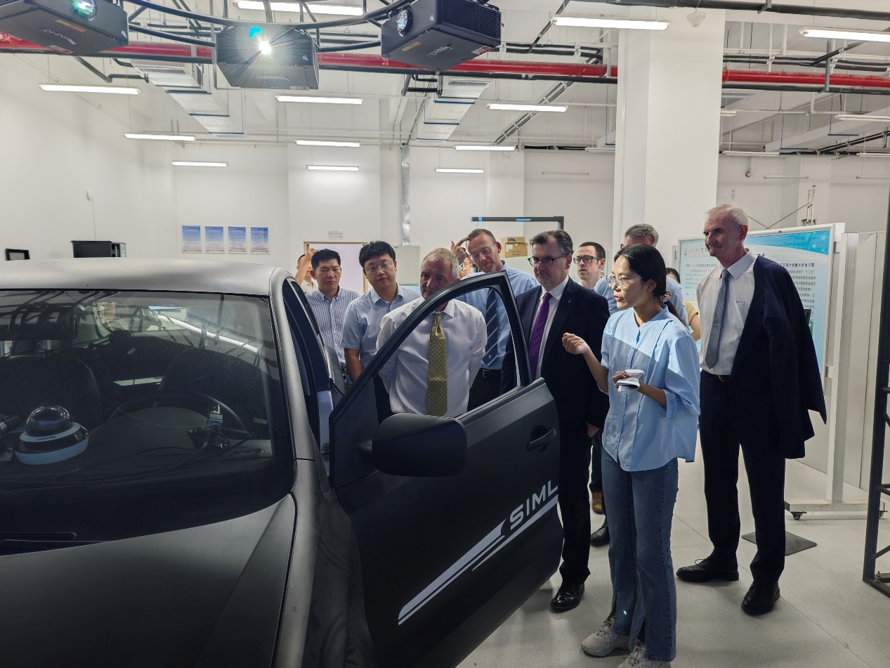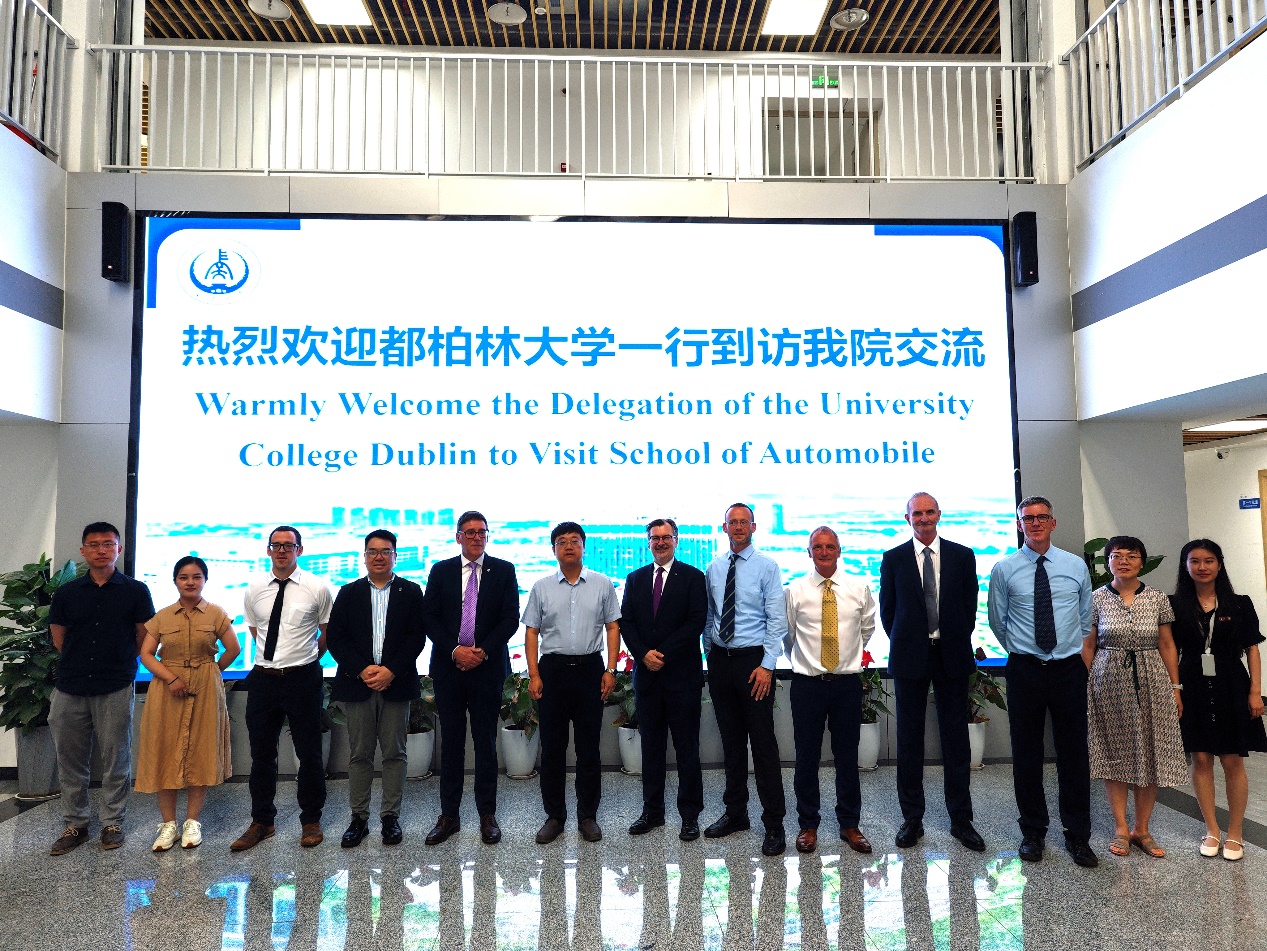 2024年6月28日,爱尔兰都柏林大学常务副校长Colin Scott教授带队到访长安大学汽车学院开展调研交流活动,代表团成员包括都柏林大学中国处处长Gavin Chaw、长安都柏林国际交通学院教务长Paul Fanning、都柏林大学机械与材料工程学院院长Vincent Hargaden、都柏林大学车辆工程系主任William Smith等专家教授。学院副院长陈轶嵩教授、车辆工程系党支部副书记马菁教授、运载工程系党支部副书记朱丹、运载工程实验室主任吴付威、车辆结构实验室主任刘钊、汽车性能实验室周辰雨、学科科研实验主管栗亮等陪同调研参观。