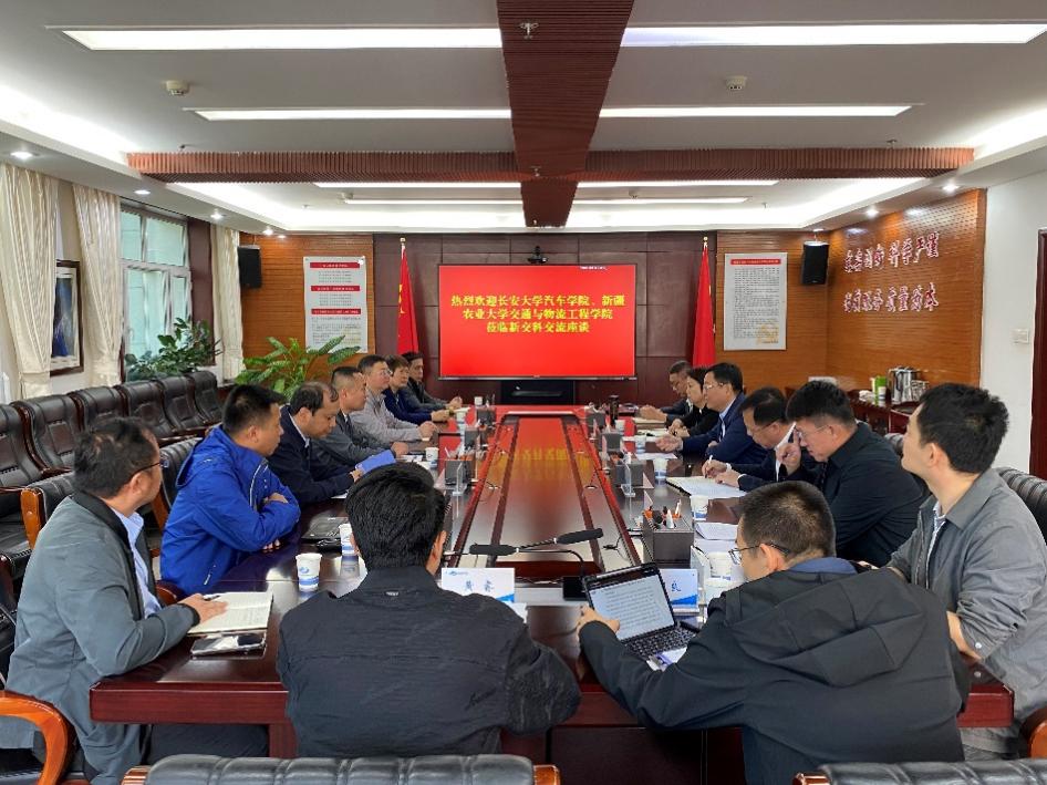 新疆交通科学研究院有限责任公司党委副书记、总经理徐亚峰,副总经理刘健、副总经理热孜万古丽﹒沙塔尔等对我院领导老师的到来表示热烈的欢迎,徐亚峰在座谈中详细介绍了新疆交科院的人员规模、企业现状、行业定位、工程优势等情况,希望能在道路交通安全技术、道路基础设施安全技术、特殊场景车路协同技术、大件货物运输技术等方向,进一步推动校企合作落地。林贵宝对公司长期以来对汽车学院的大力支持表示衷心的感谢,从学院历史沿革、学科专业设置、人才培养、学科建设和科研方向等方面介绍了学院当前的发展情况,希望在产学研合作、青年教师培养等方面进一步与企业加强合作,实现互惠共赢、共同发展。