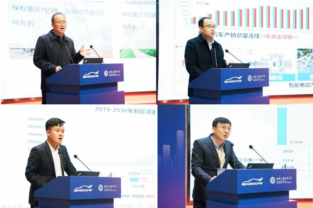 陕西省科学技术协会副主席李延潮,陕西省工业和信息化厅二级巡视员冯若,西安市工业和信息化局党组成员、副局长郭亚龙,中国汽车工程学会副理事长、陕西省汽车工程学会理事长、西安建筑科技大学校长赵祥模等领导出席大会开幕式。我院副院长、陕西省汽车工程学会秘书长陈轶嵩教授主持大会主旨报告。我院二级教授、陕西省汽车工程学会名誉理事长马建担任大会组委会主席。我院院长、陕西省汽车工程学会新能源汽车技术委员会主任委员赵轩在开幕式作主旨报告。我院教授、陕西省汽车工程学会副秘书长马菁在开幕式发布《陕西省汽车产业链技术创新图谱》。我院教授、陕西省汽车工程学会汽车低碳环保技术委员会主任委员邱兆文担任“面向双碳战略的汽车低碳环保技术”技术论坛主席。