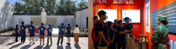 图为实践队在林基路烈士纪念馆及老虎台骑兵民兵连参观学习