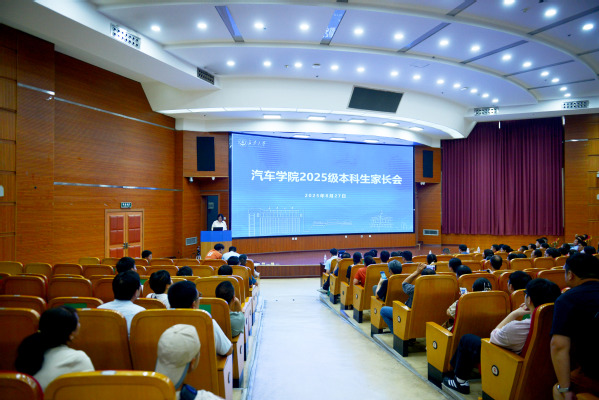 8月27日下午,汽车学院于图书馆西侧裙楼报告厅召开2025级本科新生家长会。学院党委书记林贵宝,党委副书记崔莉,副院长陈轶嵩,学院全体辅导员及本科教务主管共同参会。本次家长会采用线上线下相结合的方式,300余名新生家长参会。会议由崔莉主持。