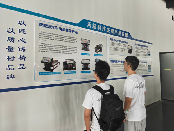8月26日,实践队前往陕西天益教育科技有限公司,深入调研产教融合创新模式。在研发中心,队员们参观了长安大学——天益科技智能驾驶联合实验室,了解了环境感知决策算法等核心技术如何为智能车辆提供支撑。技术人员现场演示并讲解了电控教学设备的调试流程,强调系统具备真实实训功能。队员们动手操作了发动机构造和新能源电池拆装实训台,通过实时数据监控深化了对汽车电控系统的理解。产品展示区呈现出覆盖汽车全技术领域的教学设备,公司坚持以“匠心铸精品,以质量树品牌”,为多所院校提供技术支持,助力高素质工程人才培养。此次活动有效促进了理论与实践的融合,展现了科技赋能教育的新生态。