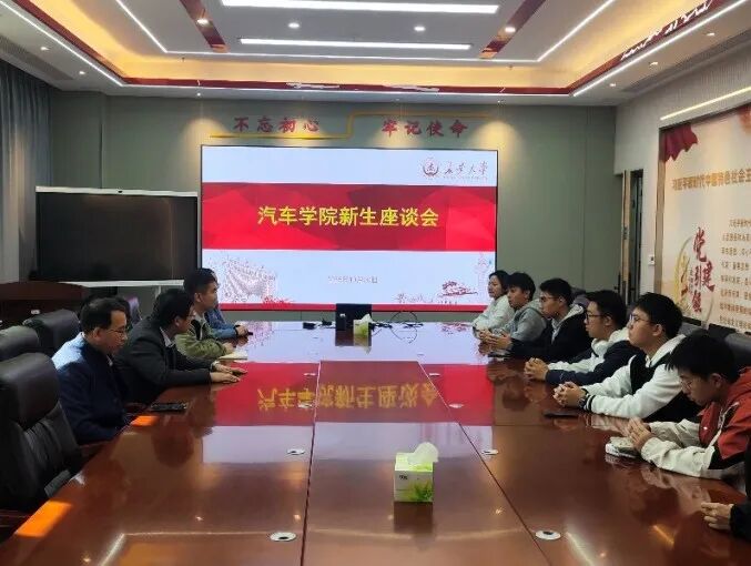 为加强新生思想引导与人文关怀,促进学生成长发展,10月30日中午,汽车学院在219会议室召开2025级陕西部分地区、福建籍本科新生代表座谈会。汽车学院副院长陈轶嵩、专业建设及教学主管张强、招生专员王飞、辅导员俞菲凡及陕西、福建籍2025级本科新生代表参加了会议。座谈会由陈轶嵩主持。