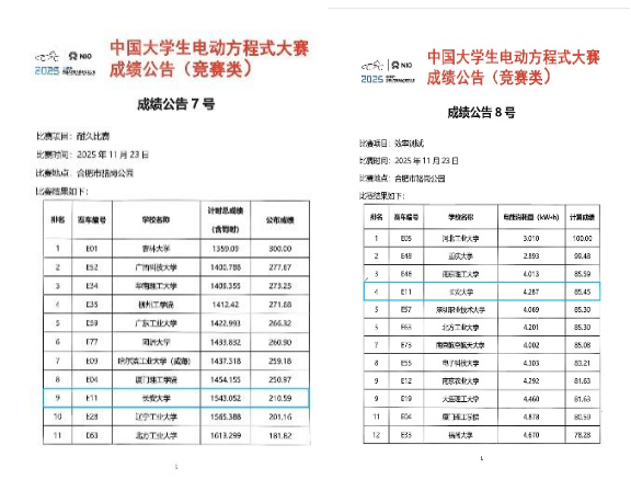 2025年11月23日,“蔚来杯”中国大学生电动方程式大赛与无人驾驶方程式大赛圆满落幕。来自全国74所高校的电动赛车队齐聚赛场,以创新设计与工程实力展开巅峰对决。长安大学方程式赛车团队凭借扎实的技术积累和坚韧不拔的团队精神,斩获电动方程式大赛(FSEC)全国一等奖和无人驾驶方程式大赛(FSAC)全国三等奖,指导教师王飞获“优秀指导教师”。创下赛车团队参赛以来的历史最佳成绩!