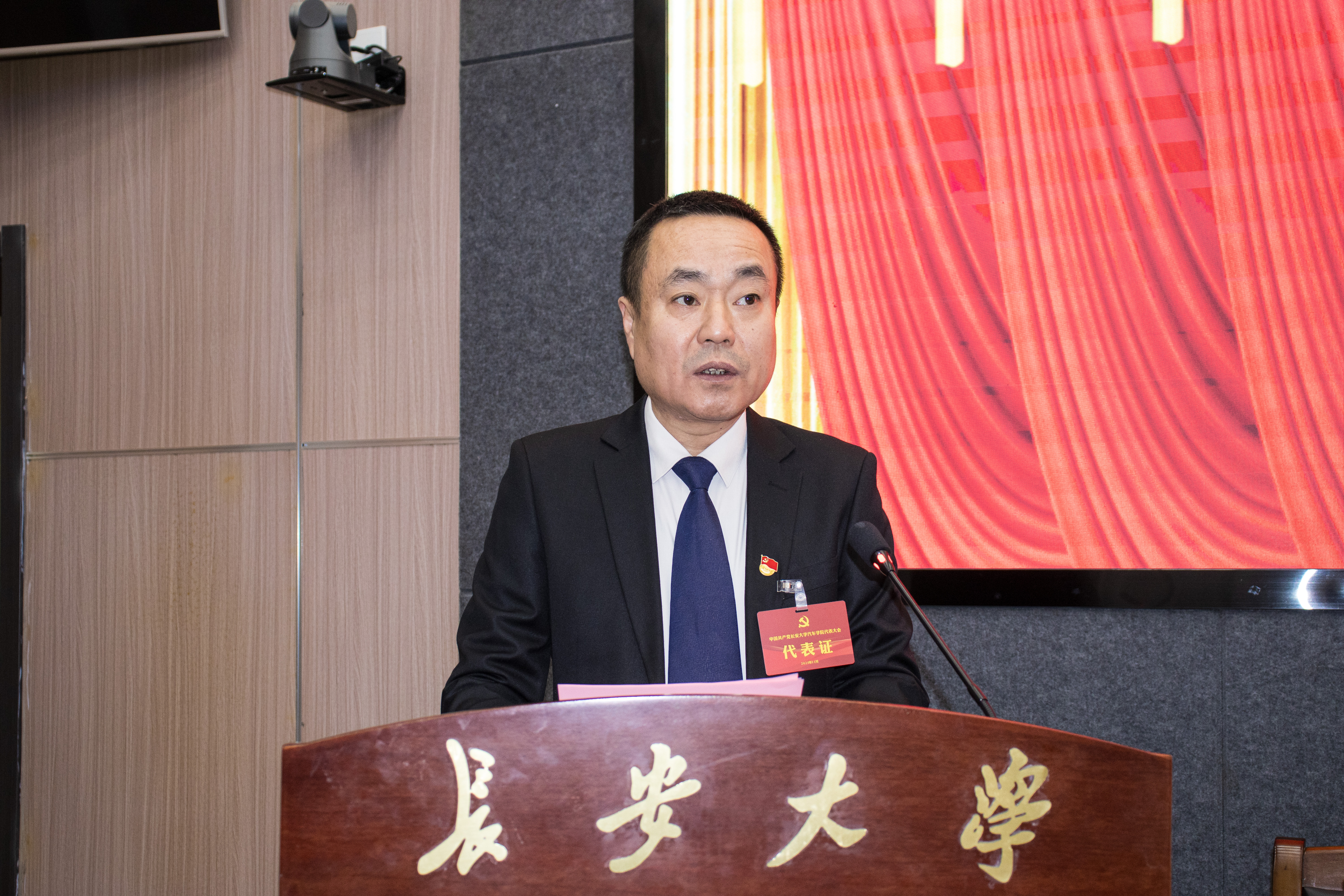 院长赵轩致开幕词。他指出,本次大会是在全面贯彻全国教育大会精神、落实教育强国建设规划纲要,面向未来十年全面布局、高位推进教育强国建设,收官决胜“十四五”和谋划开局“十五五”的关键时期召开的一次十分重要的大会,具有承上启下、继往开来的重要意义。他强调,本次大会的主要任务是总结过去、谋划未来,进一步统一思想、凝聚共识,选举产生中国共产党长安大学汽车学院新一届委员会和纪律检查委员会,团结带领全院师生党员,以时不我待、抢抓机遇的紧迫感,乘势而上、实干争先的进取心,同心同德、苦干实干的硬作风,担当作为、善谋敢为的铁肩膀,为建设国内顶尖、国际一流的汽车学院而团结奋斗。