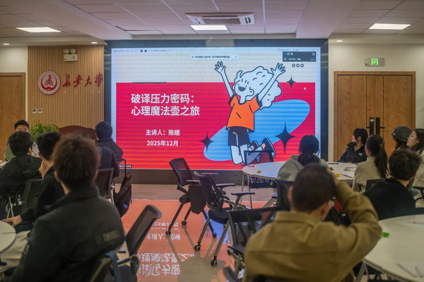 为助力师生科学认知压力、高效管理情绪,提升自我心理调适能力与综合心理素质,培育积极健康的心理状态,12月2日晚,汽车学院”心悦学堂“第十六讲在北校区朝晖园二楼团体活动室成功举办。本次讲座以“破译压力密码:心理魔法壶之旅”为主题,特邀西华大学心理健康教育中心专职教师,国家二级心理咨询师陈媛担任主讲,学院二级心理辅导站副站长杨倩主持,30余名师生到场参与,现场氛围温馨而热烈。
