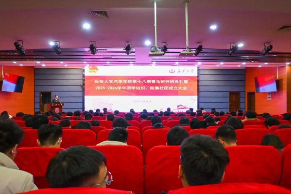 12月4日晚,汽车学院第十八期青马班开班典礼暨2025-2026学年团学组织、院属社团成立大会在渭水校区会议中心举行。学院党委书记林贵宝,党委副书记崔莉,学生工作办公室主任郑文捷,各团学组织指导老师出席活动,学院第十八期青马班全体学员,各团学组织、院属社团成员代表参加,大会由学院团委副书记杨倩主持。