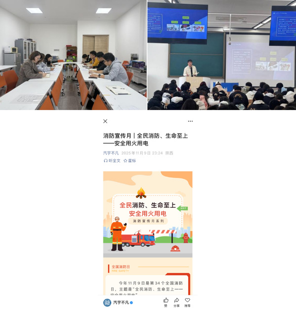 强化教育引导,构建育人屏障。院领导、辅导员、班主任协同联动,通过“周见面”、主题班会等形式深化线下安全宣教与思想动态引导。学院持续加强网络育人平台建设,依托微信公众号、视频号等新媒体矩阵,定期策划推送涵盖人身安全、消防安全、交通安全、防范电信网络诈骗等主题的系列内容,普及安全知识,增强师生防范意识与能力;学工团队严格落实辅导员24小时值班值守制度,并加强应急处突专项培训,每日进行工作研判,确保信息渠道畅通、问题响应及时。