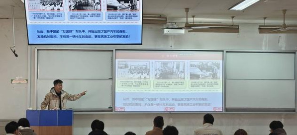 课堂上,汤皓添结合汽车行业发展趋势与新质生产力要求,阐述了新时代青年在科技创新与产业变革中的责任担当,引导大家将专业学习与国家战略相结合,通过案例剖析、经验分享等形式,引导学员共同思考“如何成为有理想、敢担当、能吃苦、肯奋斗的新时代好青年”。
